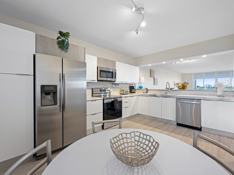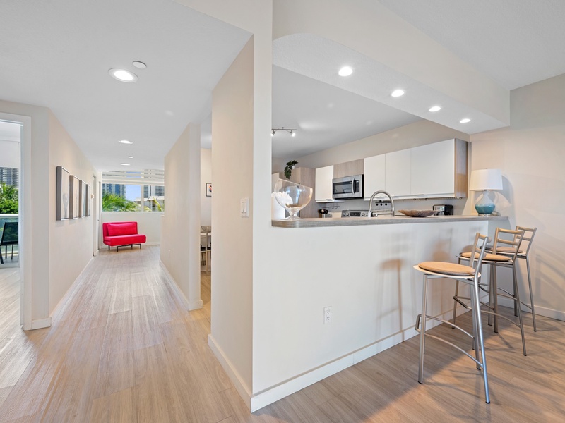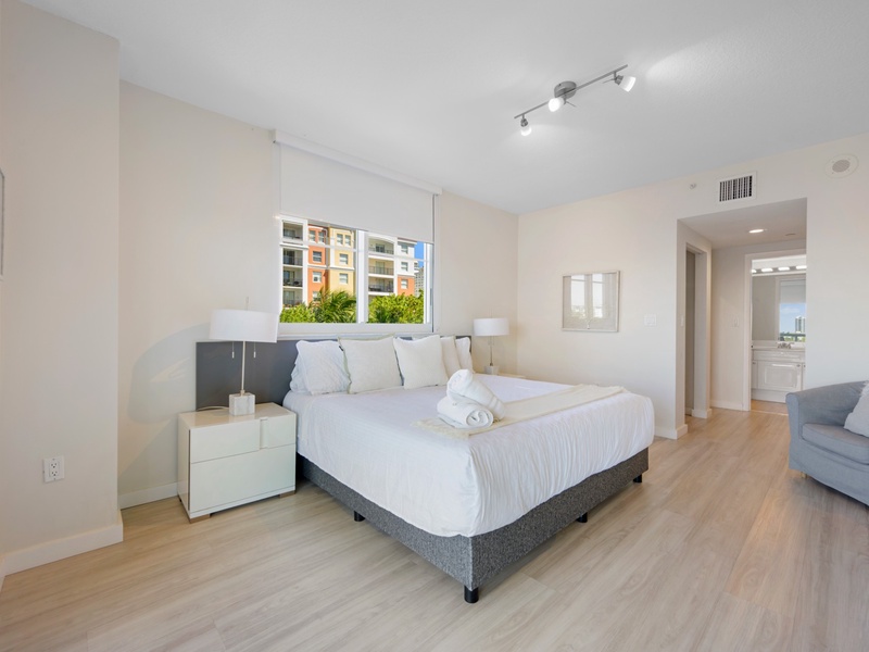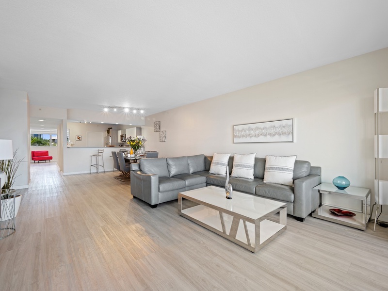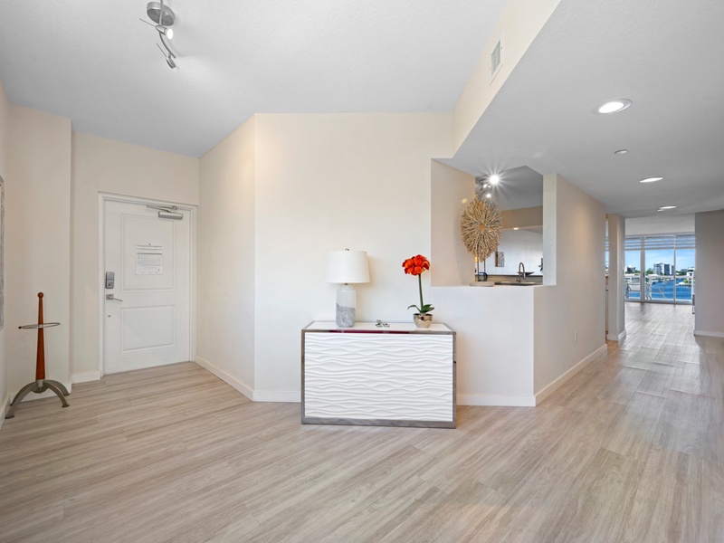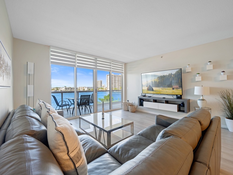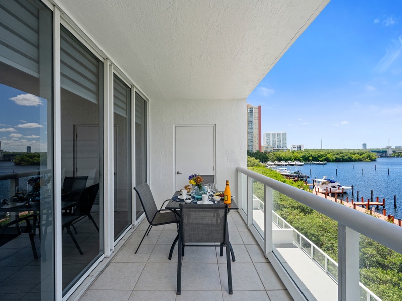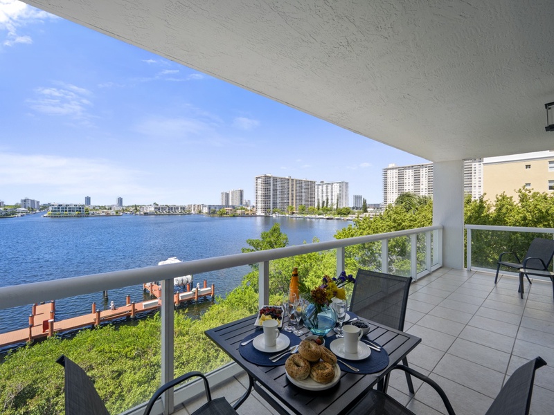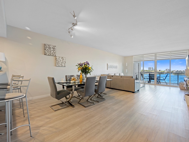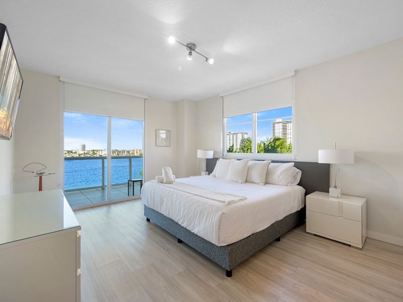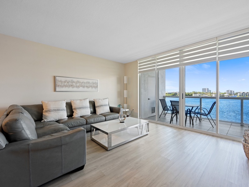 Indulge in the perfect waterfront getaway at our stunning 2-bedroom, 2-bathroom condo located on the 5th floor of a boutique building overlooking the picturesque Intracoastal channel. This corner unit boasts two balconies, allowing you to soak in breathtaking views from both the Intracoastal and the east. With windows all around, the condo is bathed in natural light, creating a luminous and inviting atmosphere.