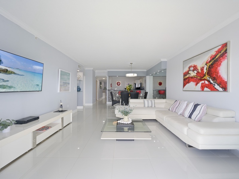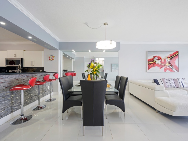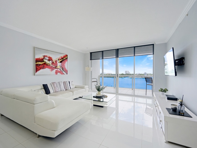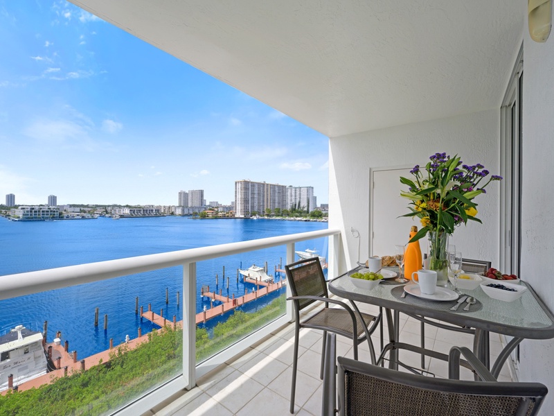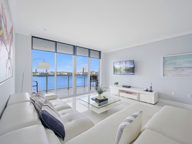 Discover the perfect blend of relaxation and convenience at this beautifully renovated 2-bedroom, 2-bathroom waterfront condo in Sunny Isles Beach. Located on the 7th floor of an exclusive boutique building with only 84 residences, this stylish vacation rental offers breathtaking views of the Intracoastal Waterway from a private balcony and is just a 10-minute walk (0.5 miles) to the beach.
